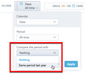 Same period of the previous year—For example, you can display data for March 2018 and compare it to March 2017.