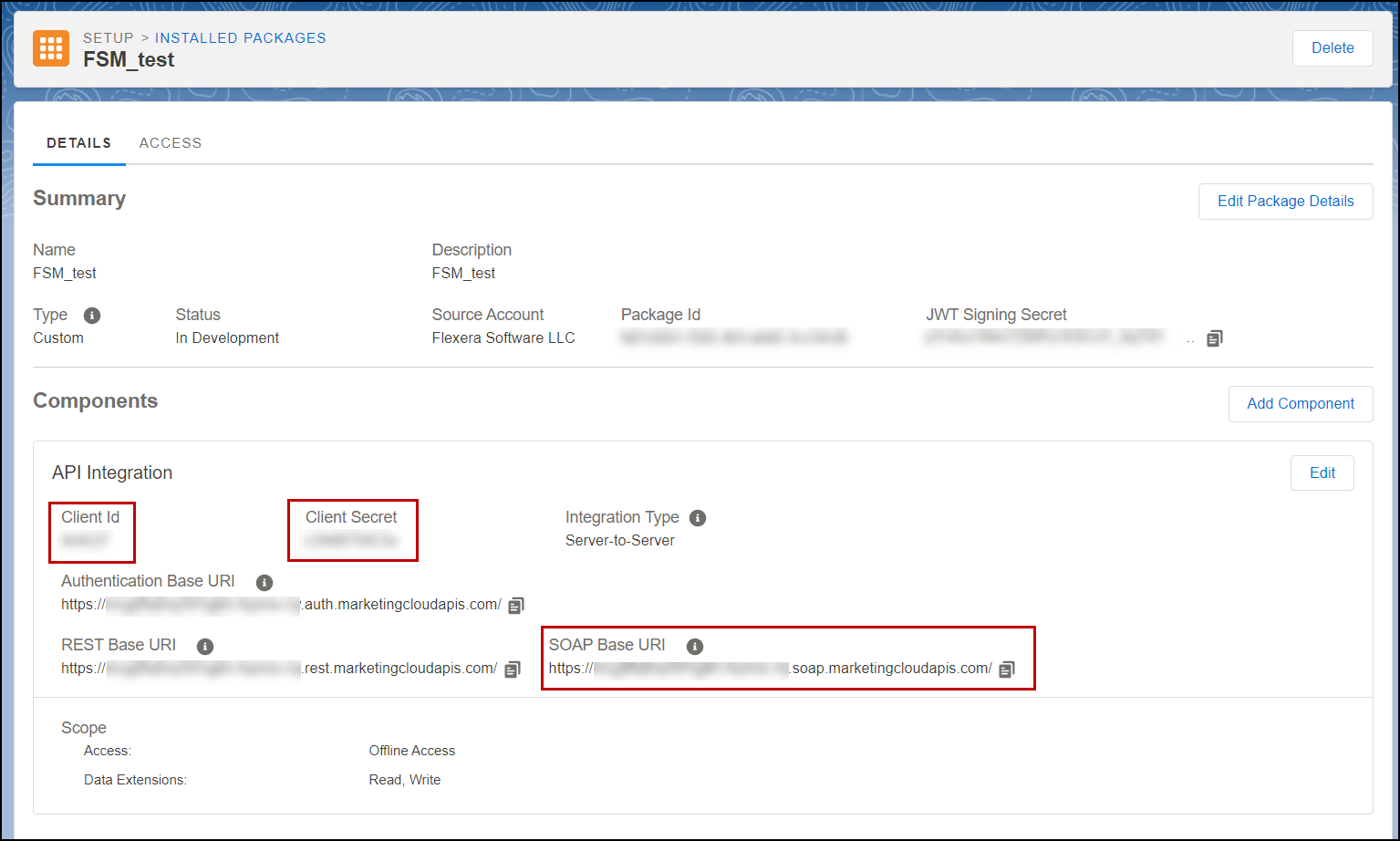 2. To obtain the Salesforce Marketing Cloud Client ID, Client Secret, and ServiceURL values: